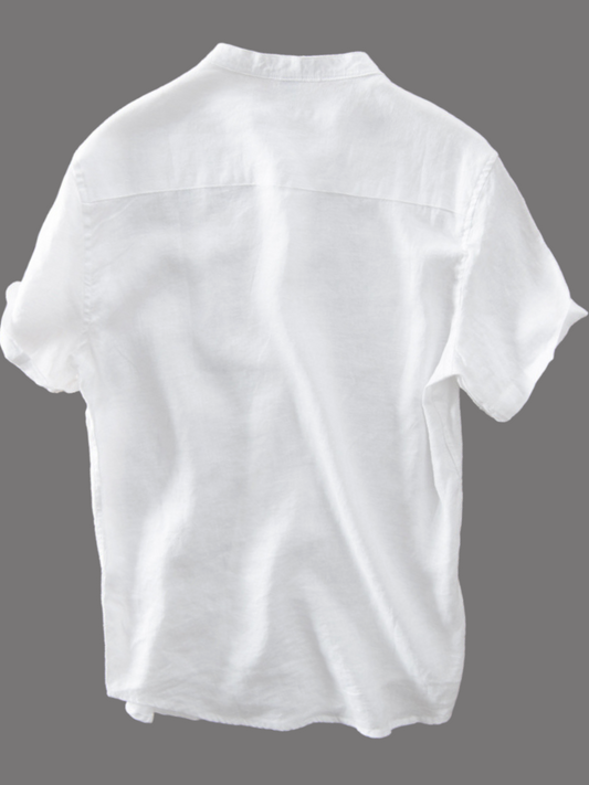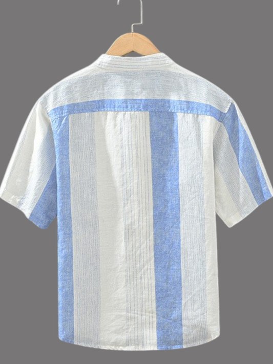 #Men's Light Blue Half-Sleeve Mandarin Collar Shirt