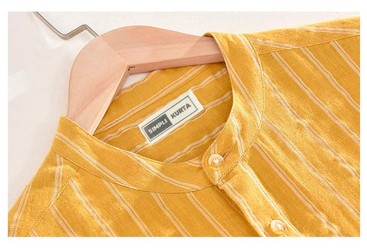#Men's Cotton Mustard Yellow Kurta Shirt with Pocket